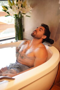 Sabendo da sua preferência por estímulos mais intensos, transformamos a nossa tradicional banheira de cromoterapia em uma banheira de gelo.