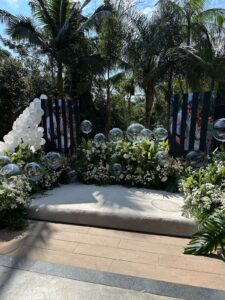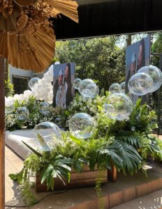 Cada elemento foi pensado para traduzir o estilo do casal: leve, elegante, conectado à natureza e com um toque contemporâneo. O verde presente nas folhagens trouxe vida e frescor. As flores brancas trouxeram delicadeza e pureza ao momento. Os balões transparentes criaram uma atmosfera leve, quase etérea, acompanhando a expectativa da revelação.