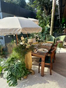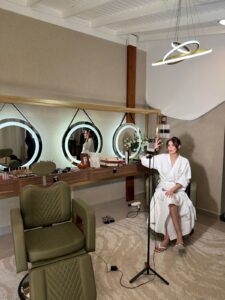 Enquanto isso, Adriana seguia sua preparação, entre cabelo e maquiagem, em um fluxo tranquilo e respeitando o tempo de cada detalhe. Essa transição entre ambientes — do Spa ao Quintal — não é apenas logística. Ela faz parte da experiência.